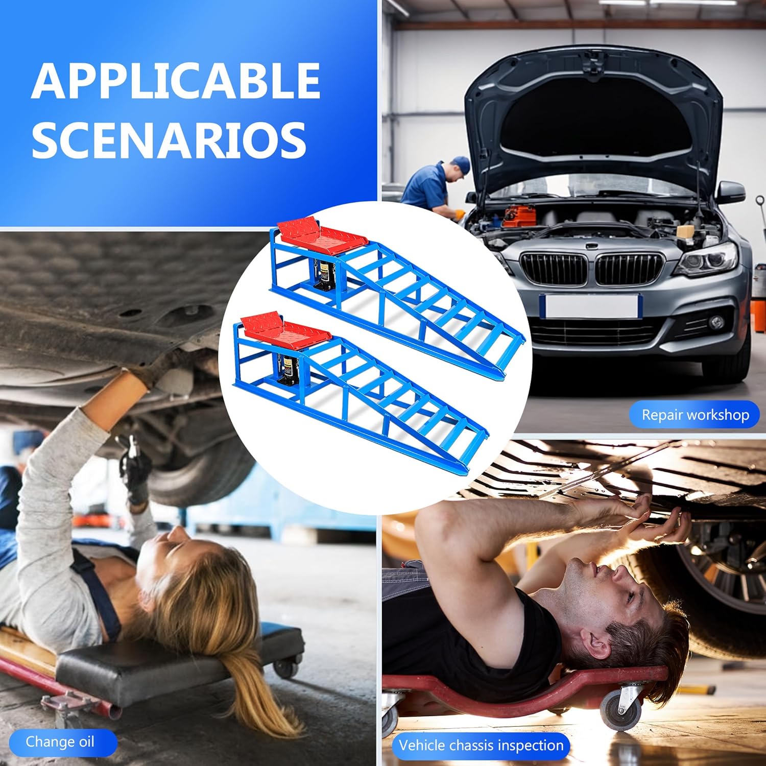- High Quality: The heavy duty car repair ramp is made of heavy duty steel construction with a painted exterior to prevent rusting. The vehicle repair ramp is highly durable and strong for long lasting durability and longevity. The car ramp suitable for all under-vehicle maintenance and inspections