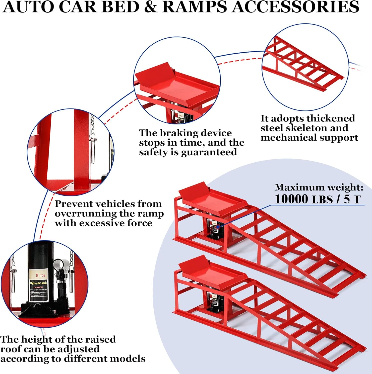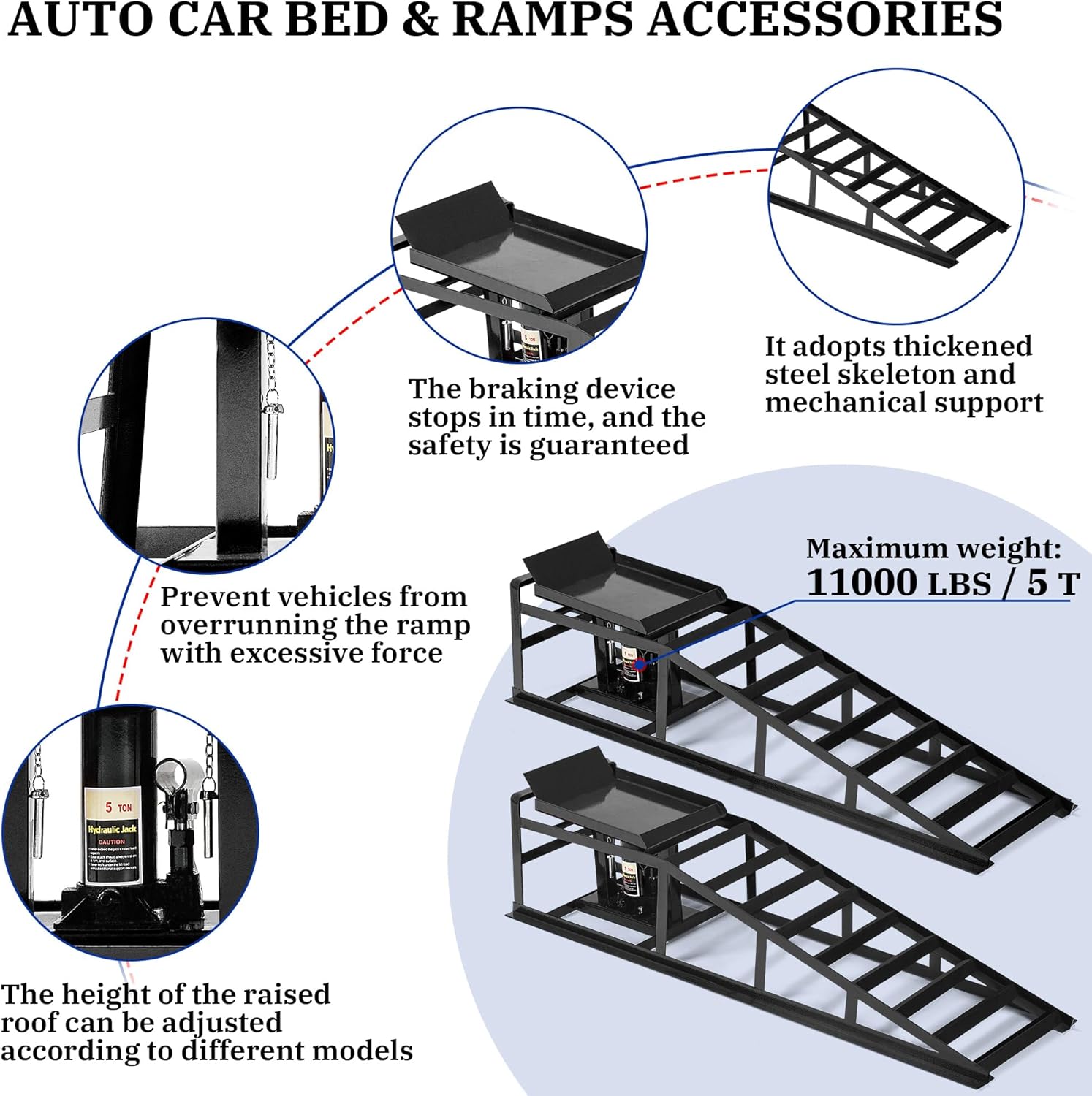 2PCS 5T Hydraulic Car Ramps, 11060lbs Heavy Duty Lift Set